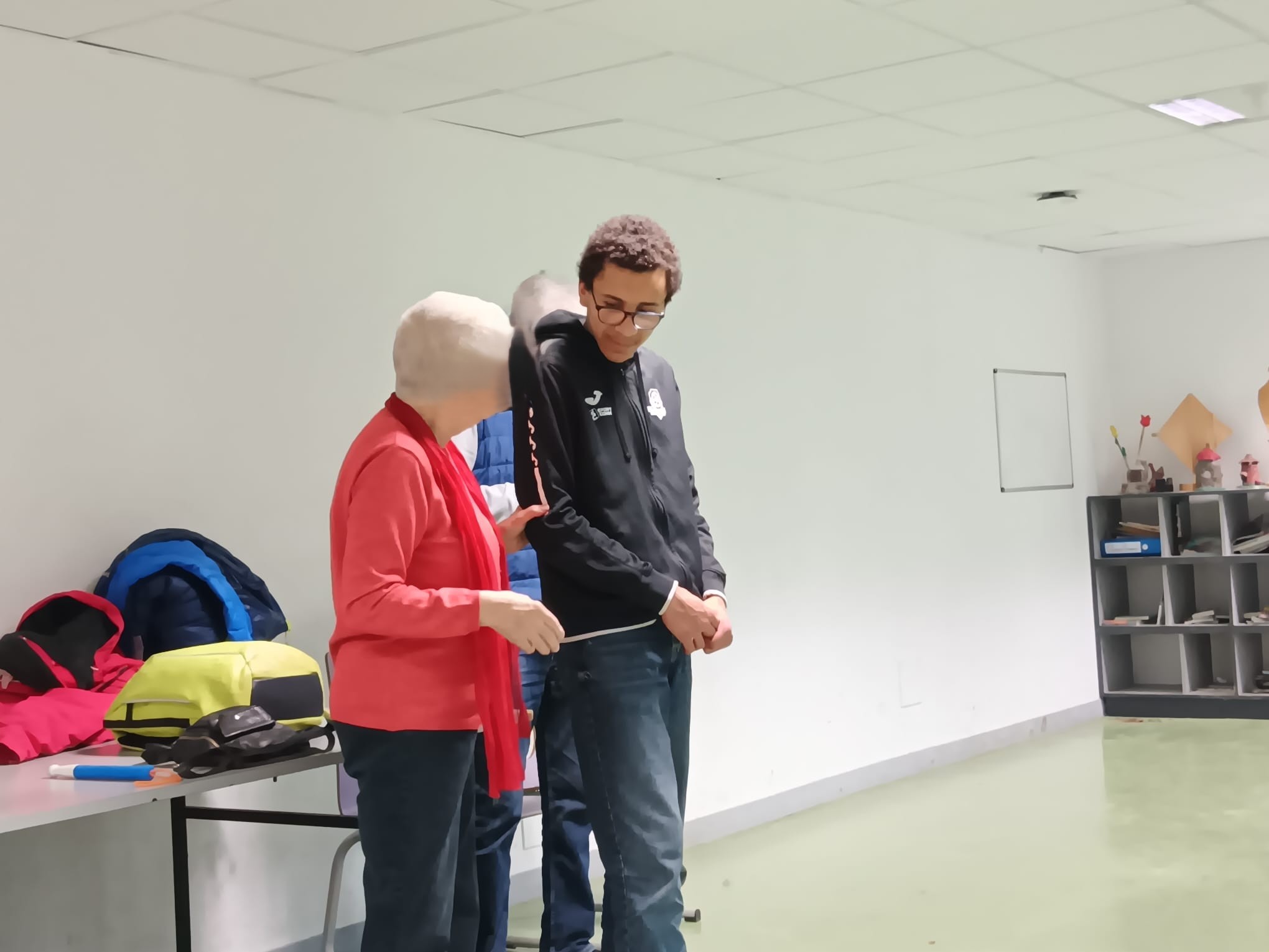 Lors de cette rencontre, elle nous a expliqué comment accompagner une personne aveugle en toute sécurité, le fonctionnement de sa canne blanche, ainsi que la relation essentielle qu’elle entretient avec son chien guide. Elle a aussi présenté l’utilisation de son smartphone grâce à la commande vocale et à l’écriture en braille.